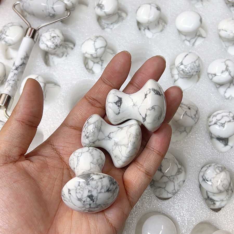 Bâton de massage personnalisé de réflexologie faciale en turquoise blanche cuillère Howlite Guasha soulagement de la douleur des méridiens des tissus profonds et massage du visage