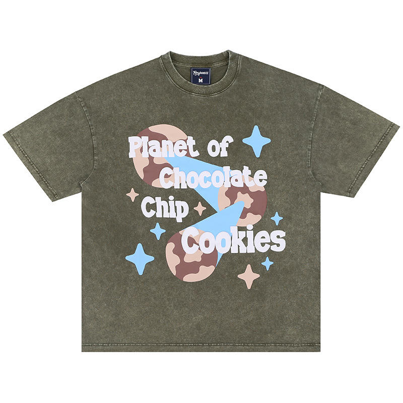 T-Shirt pour hommes, vente en gros, haute qualité, écran en soie, mode rue, dessin animé, planète, Alphabet imprimé, T-Shirt lourd