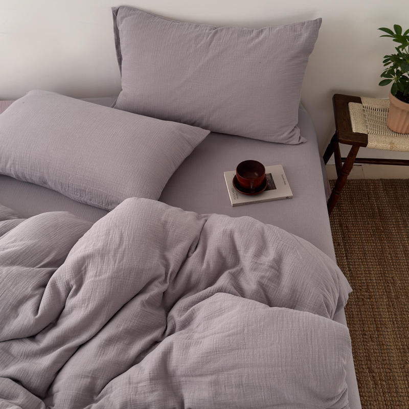 Parure de lit en coton doux à double couche, couleur unie, fil froissé, sur mesure, vente en gros, grand drap de lit/ensemble ajusté
