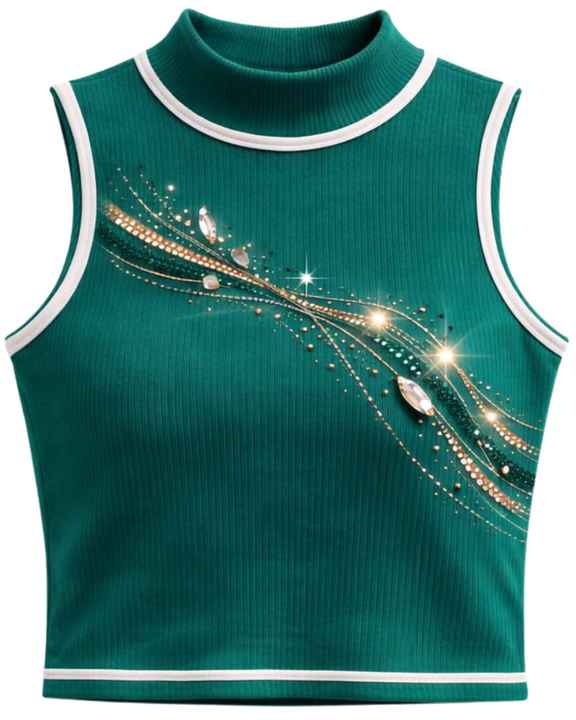 Débardeur côtelé vert émeraude personnalisé pour femme avec rayures en strass, sans manches, été, fabrication sur mesure
