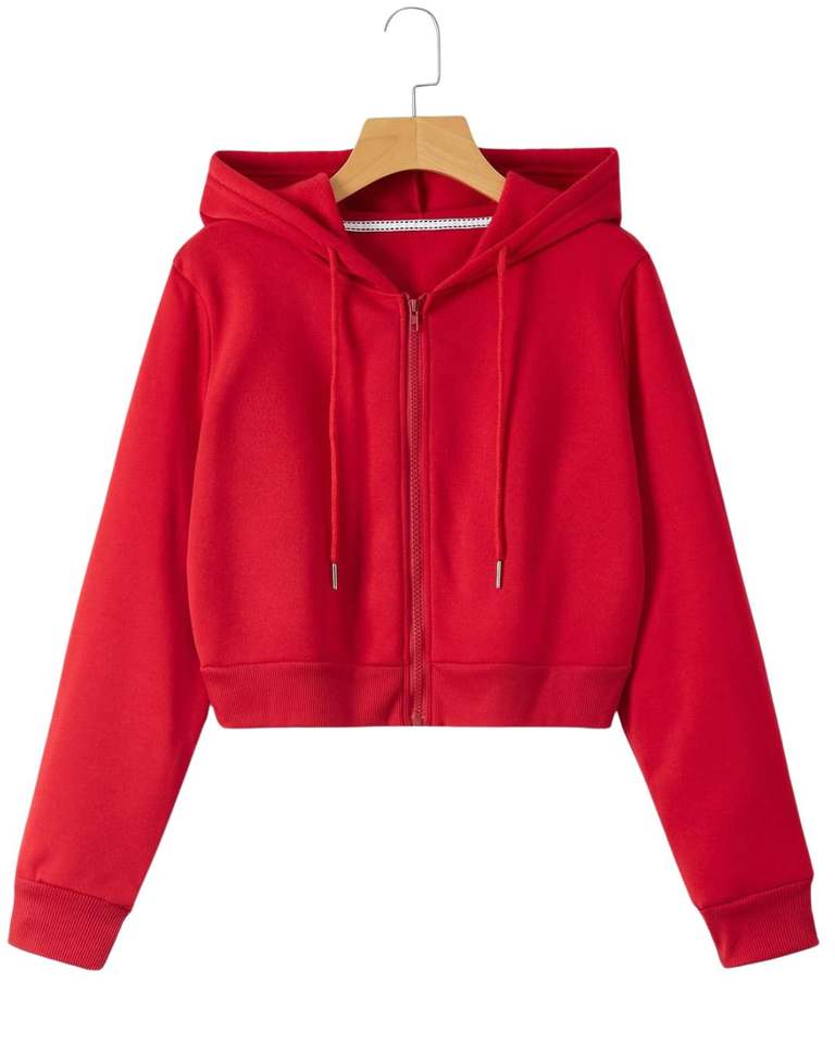 Customized Women Red Crop Zip Hoodie Casual Long Sleeve Hooded Sweatshirt With Zipper Rib Cuff Fashion Winter Streetwear Top