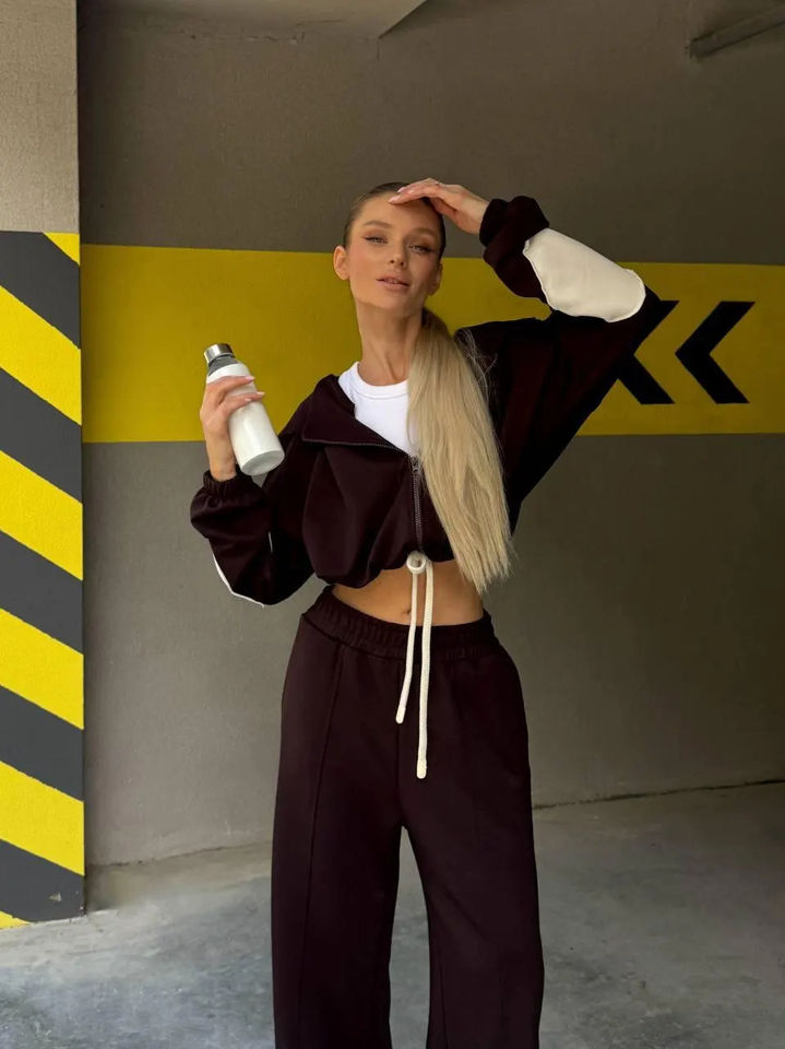 Tenues 2 pièces en molleton personnalisé pour femmes, survêtement, haut court, sweat à capuche, sweat, haut droit, ensemble de pantalons de survêtement