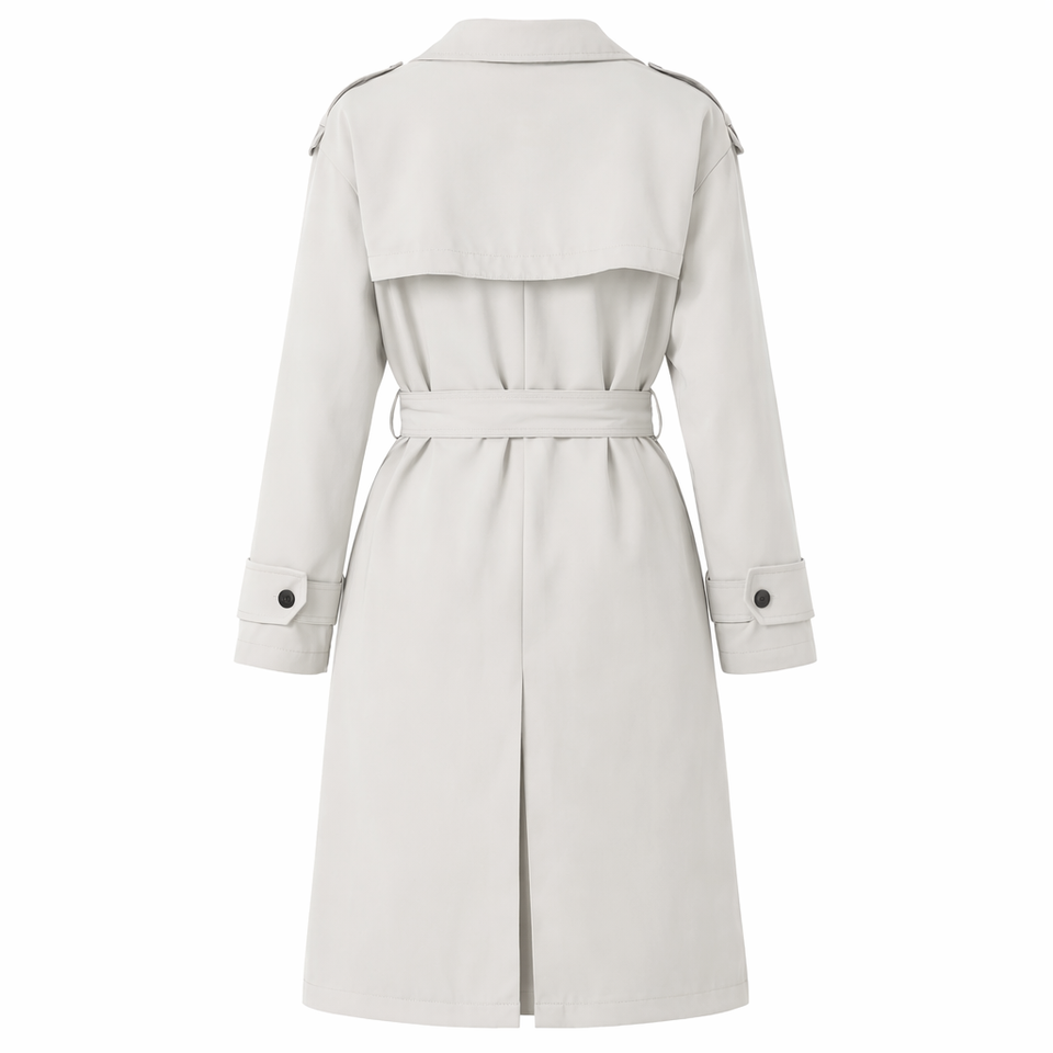 Customized Women's Linen Cotton Blend Beige Double Breasted Trench Coat Notched Lapel Self-Tie Belt Epaulets Mid-Length Trench