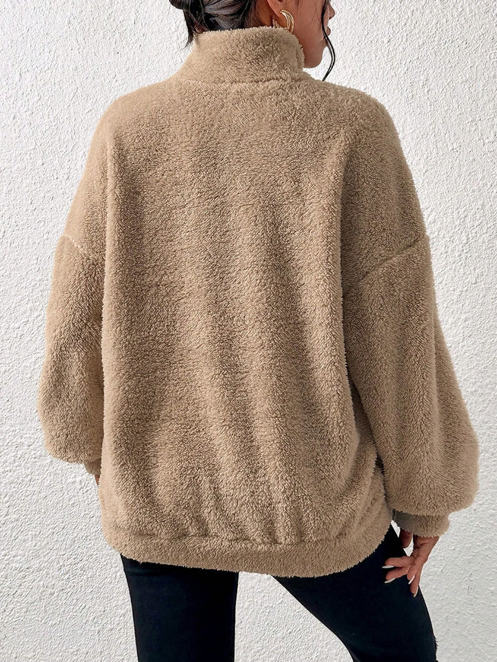 Customized Women's Solid Color Fleece Hooded Sweatshirt, Thick & Warm Fleece Sweatshirt For Ladies