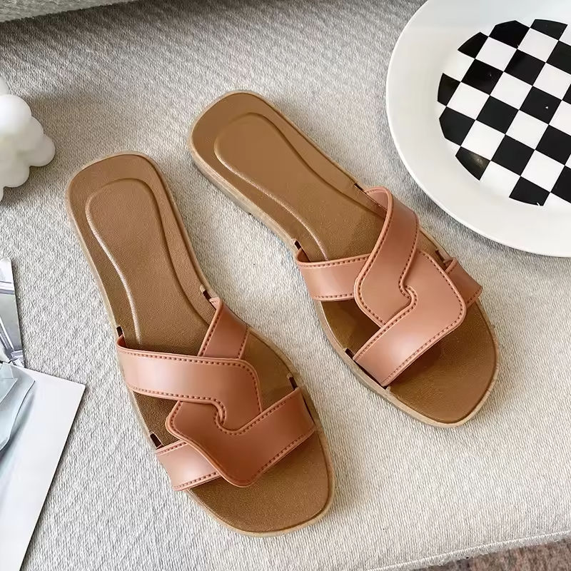 Sandales plates personnalisées pour femmes, respirantes, de haute qualité, légères, avec amorti, couleur unie, idéales pour la plage et les tenues de mode.