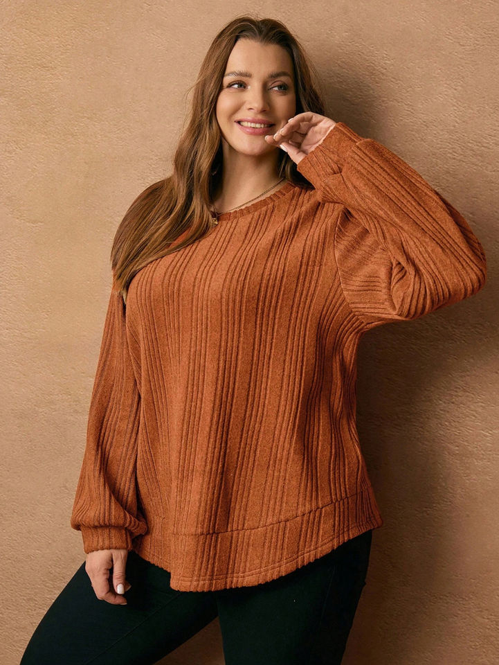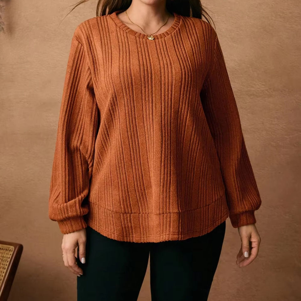 Sweat-shirt à col rond en polyester de couleur unie pour femmes personnalisé, tricoté gaufré épais et chaud pour dames