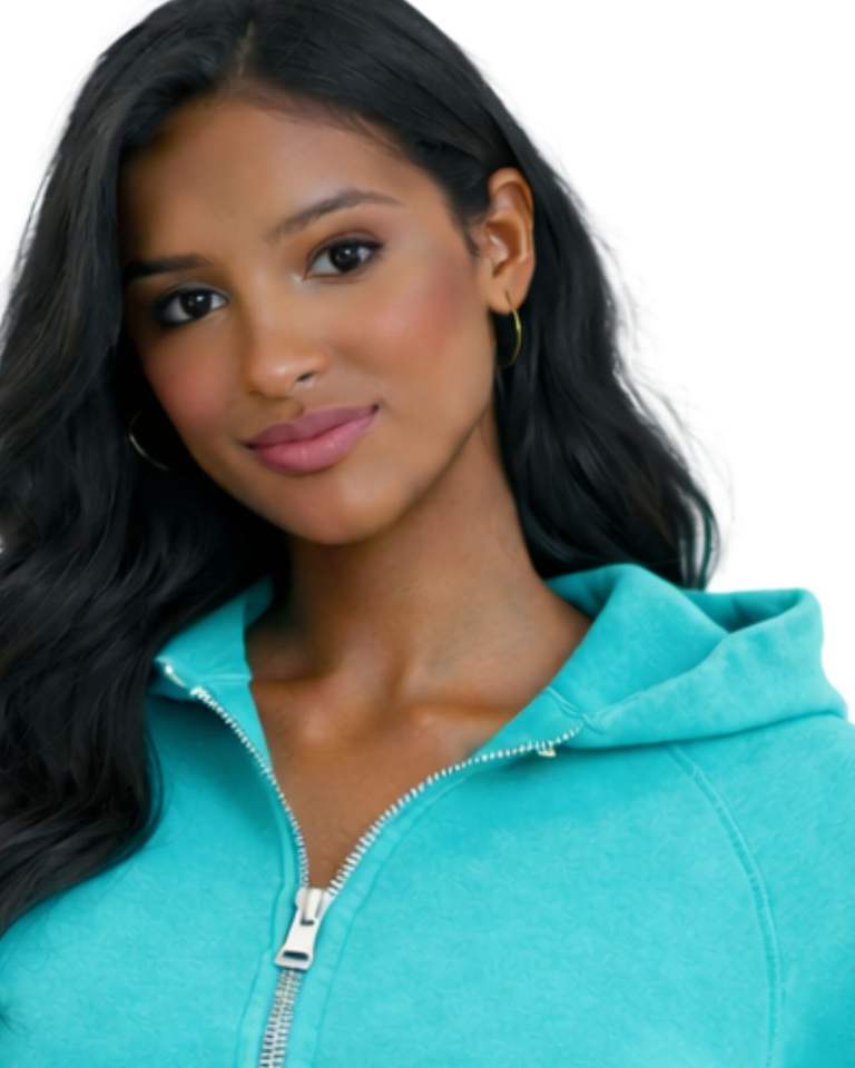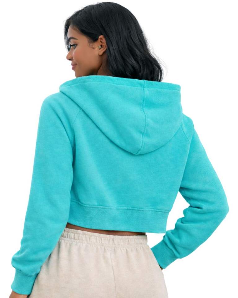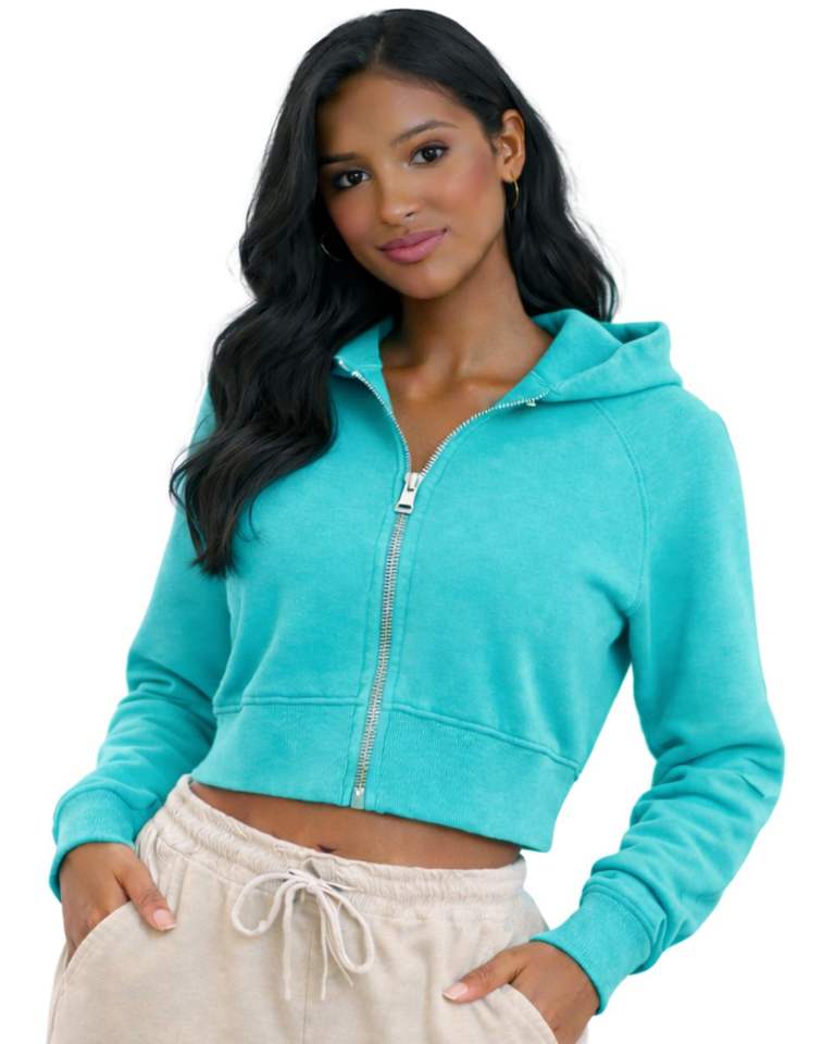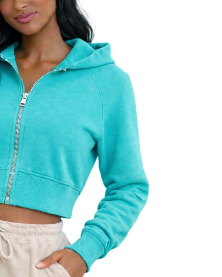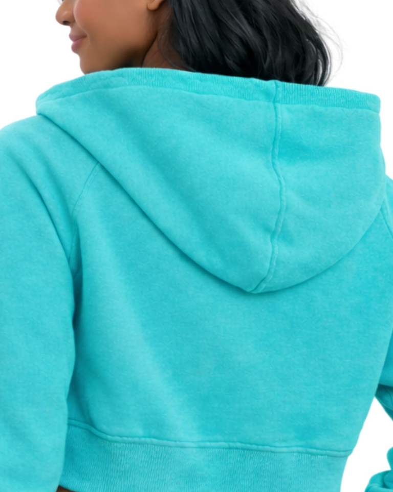 Sweat-shirt à capuche zippé court personnalisé pour femme, couleur turquoise, manches longues, style décontracté streetwear, veste de sport et fitness