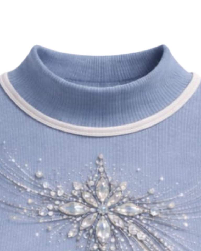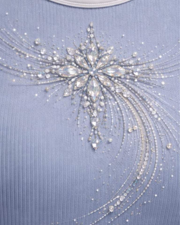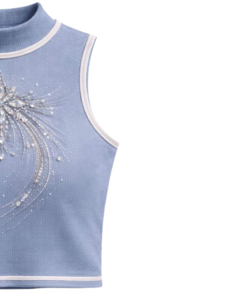 Débardeur côtelé bleu clair personnalisé pour femme avec motif floral en strass, sans manches, été, fabrication sur mesure