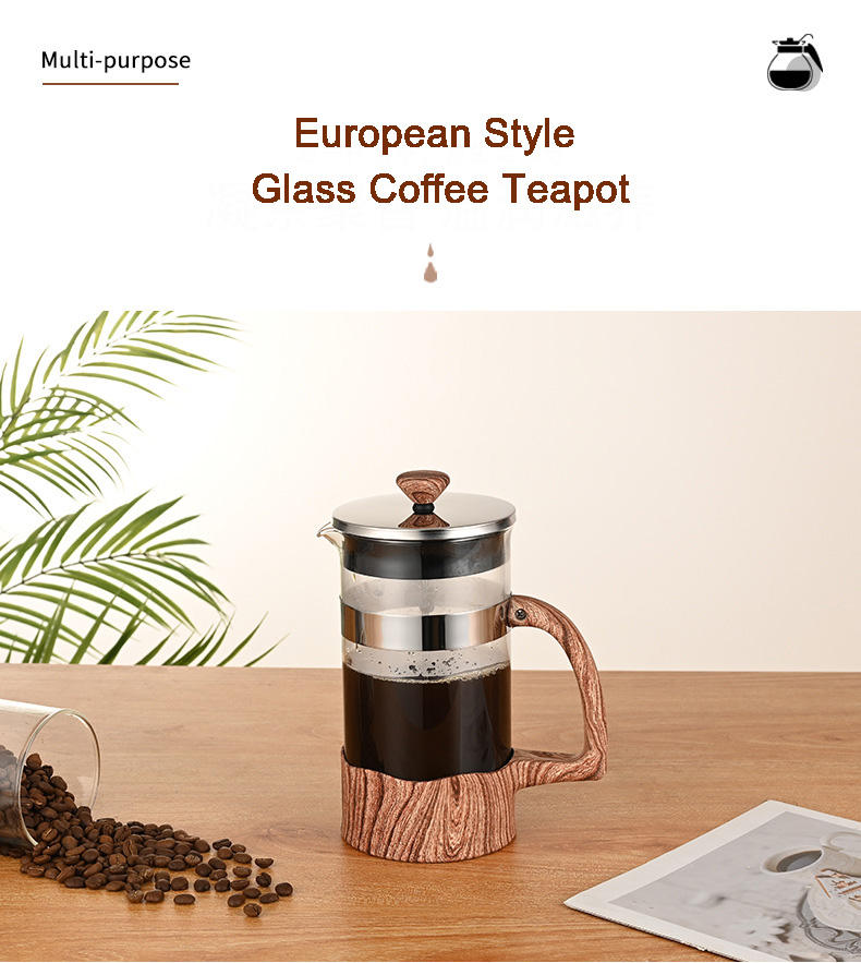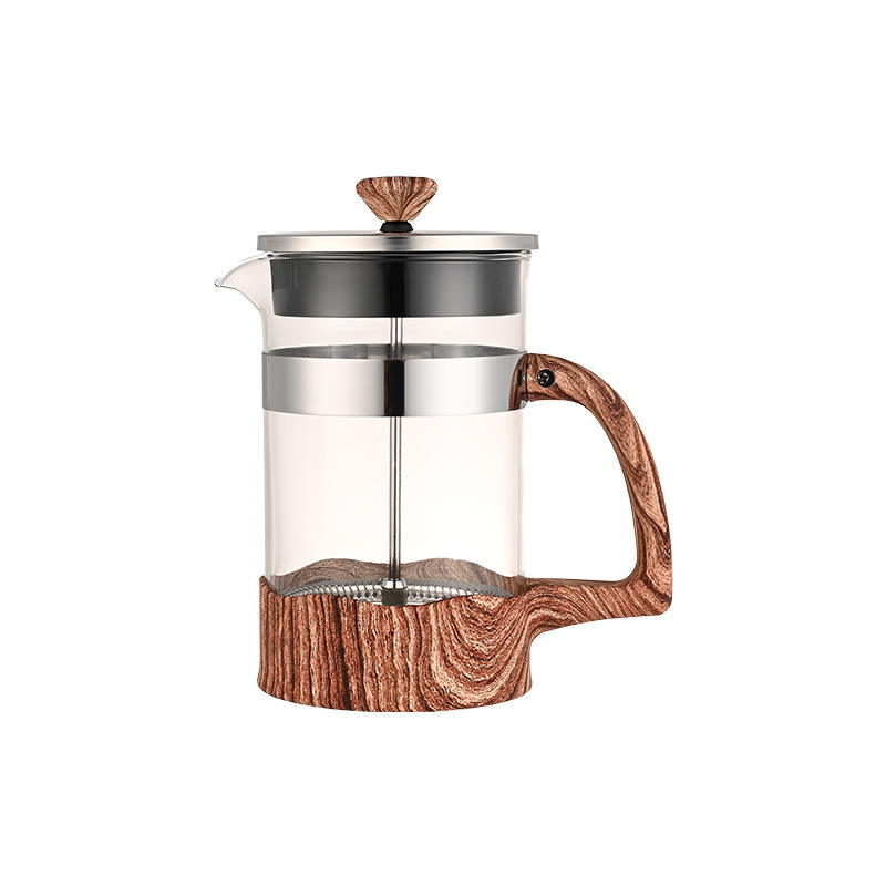Poignée en grain de bois personnalisée presse à pointe française sur les ongles presses françaises en verre borosilicate théière pour cafetière