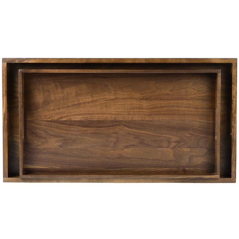 Ensemble de plateaux en bois personnalisés en couleur mangue chaude avec forme rectangulaire classique et style intemporel idéal pour se divertir