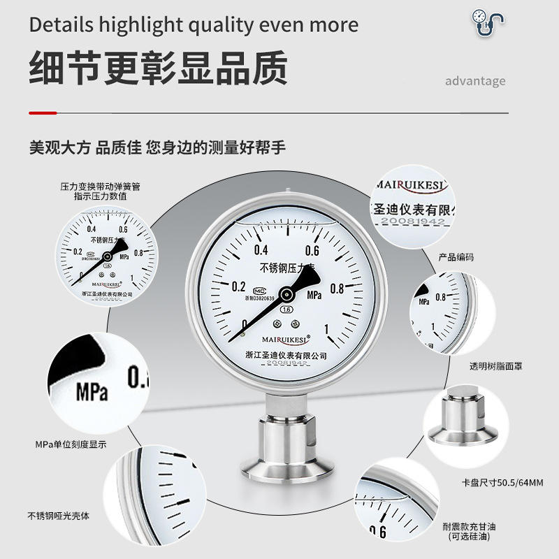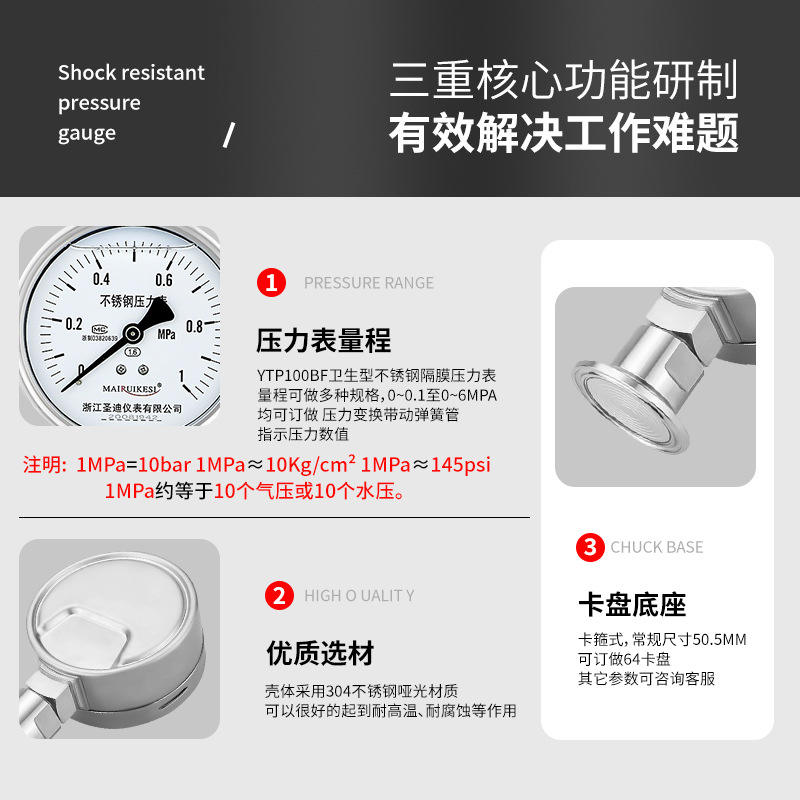 Mandrin YTP100BF personnalisé, finition mate en acier inoxydable 50.5, à fixation par pince, à dégagement rapide, hygiénique, pour pression de diaphragme de qualité alimentaire