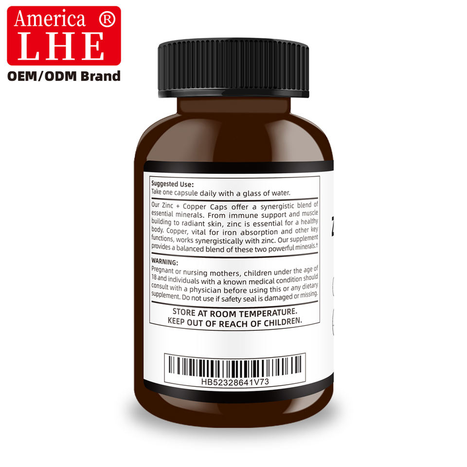 Fabricant de capsules de zinc et de cuivre personnalisées, complément alimentaire pour la clarté de la peau et la structure des cheveux, capsules de zinc et de cuivre