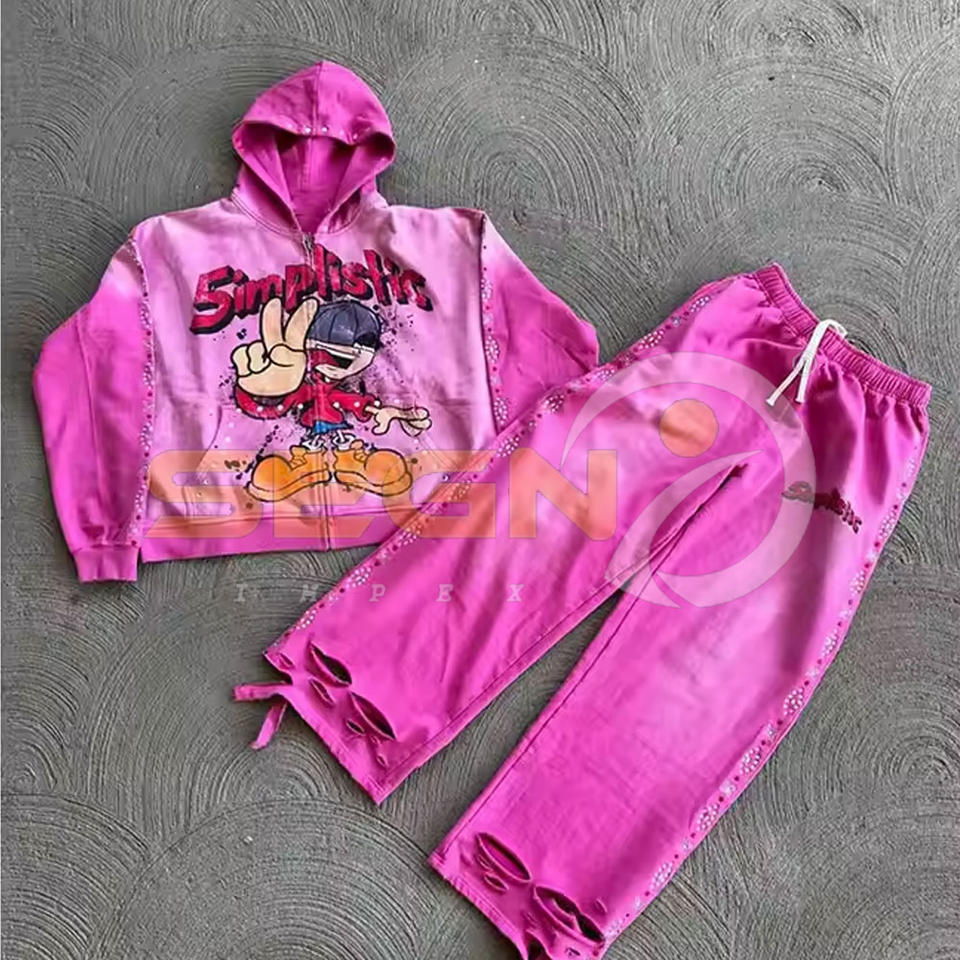 Keywords:Acid Wash Distressed Embroidery Sun faded Tracksuits For Men
