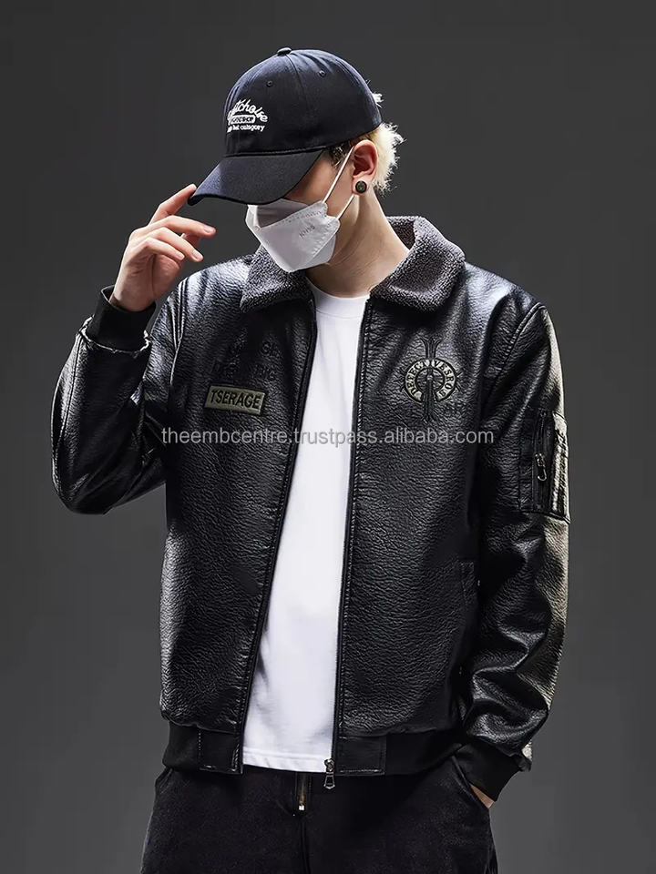 Veste tendance en cuir véritable à fermeture éclair personnalisée pour hommes de bonne qualité à des tarifs de gros Veste de couleur personnalisée pour hommes