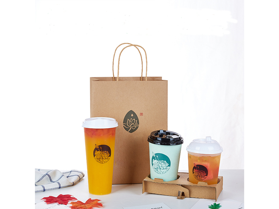 Sac shopping personnalisé, écologique, biodégradable, en papier kraft pour emballage de restauration rapide.