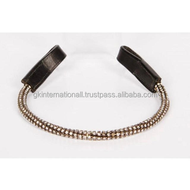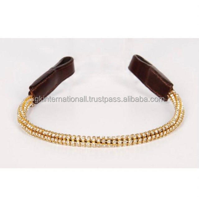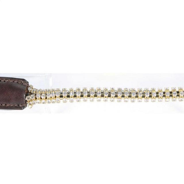 Jarretière en cuir véritable fait à la main, bandeau rond mixte fait-main, noir ou marron, couvert avec une chaîne à cristaux scintillants