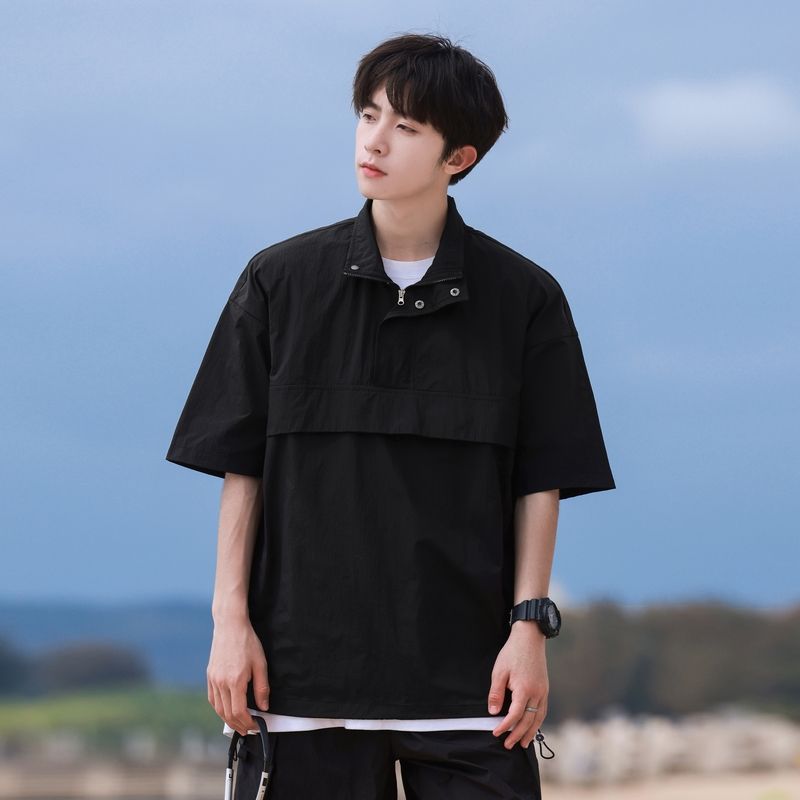 Logo personnalisé 2025 New rich and old money cleanfit double fermeture éclair manches courtes largeur courte en été respirant plage extérieure