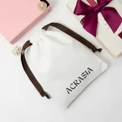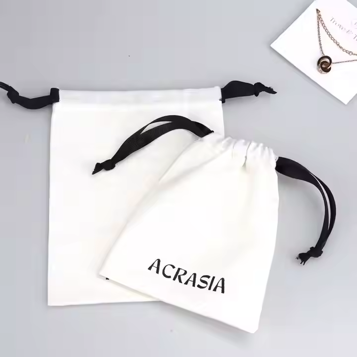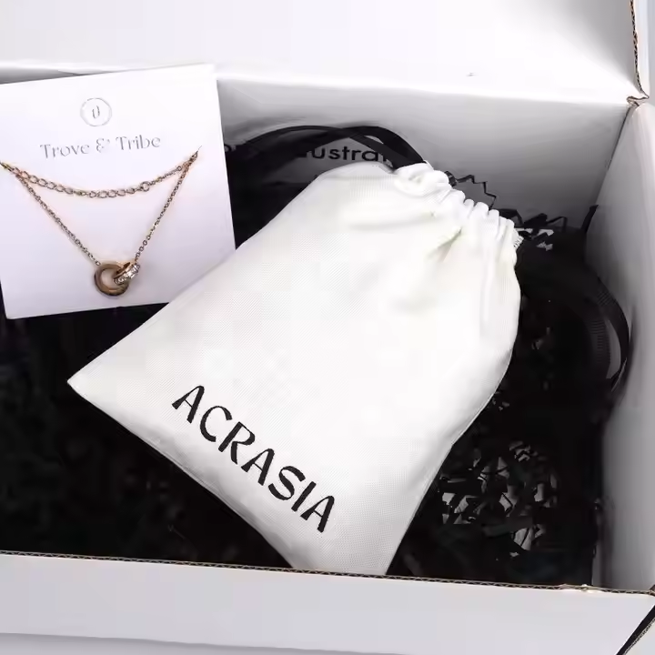 Pochette en toile de coton crème personnalisée pour bijoux de mode dame fermeture ouverte sac à cordon Logo pour boucle d'oreille collier emballage