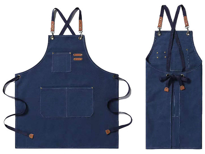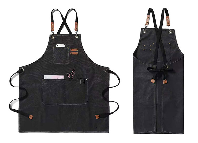 Tablier de cuisine en toile à dos croisé avec logo personnalisé, tablier de barbecue, tablier de barista, tablier de barman avec sangle réglable