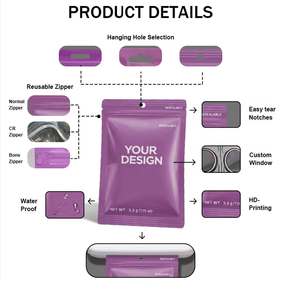 Customized logo Empty Smoking Cigar Wraps Humidor Plastic Packaging Ziplock Pouch Bags