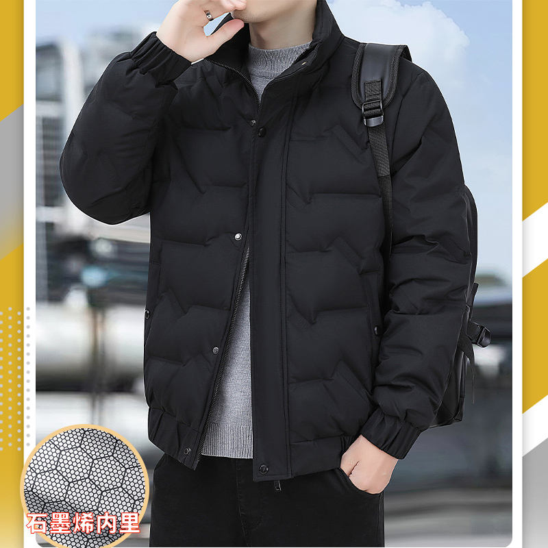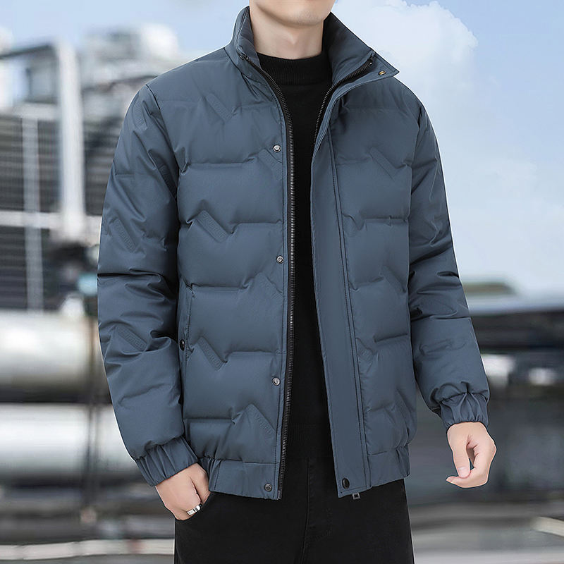 Veste d'hiver courte matelassée pour homme avec col en fourrure, logo personnalisé, en coton rembourré, chaude et confortable.
