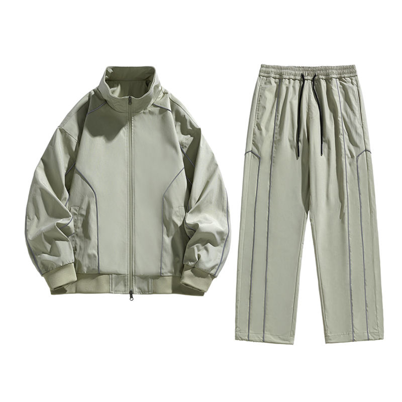 Ensemble de costume de mode personnalisé avec logo, veste contrastante pour homme, printemps et automne, avec un ensemble de pantalons de sport droits à jambes larges