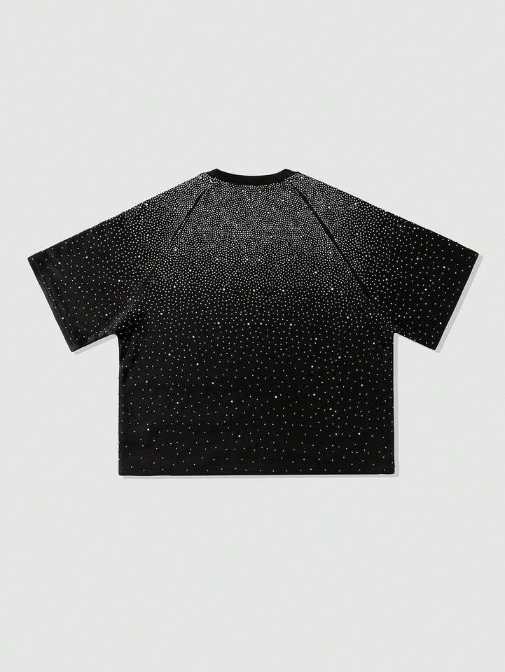 T-shirt en coton pour homme de haute qualité avec logo personnalisé, style streetwear, orné de strass, coupe carrée et courte à manches courtes