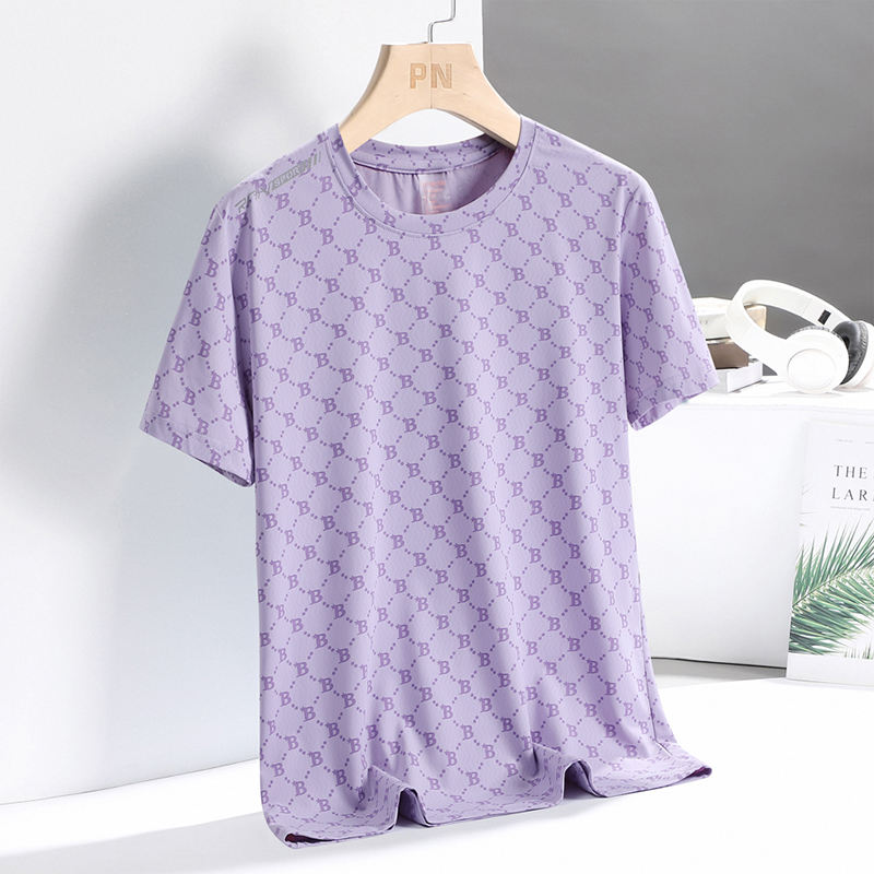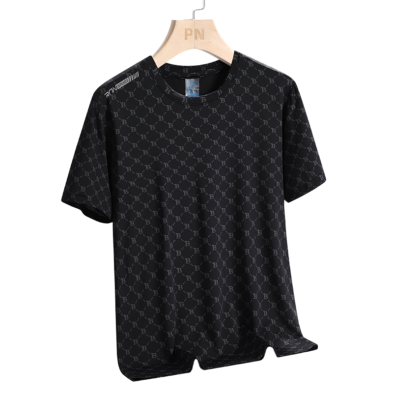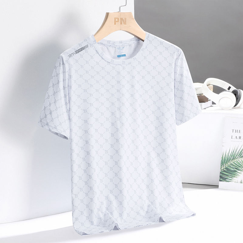 T-shirt en soie glacée personnalisé avec logo, pour homme, été, col rond, tendance, séchage rapide, décontracté, manches courtes, respirant