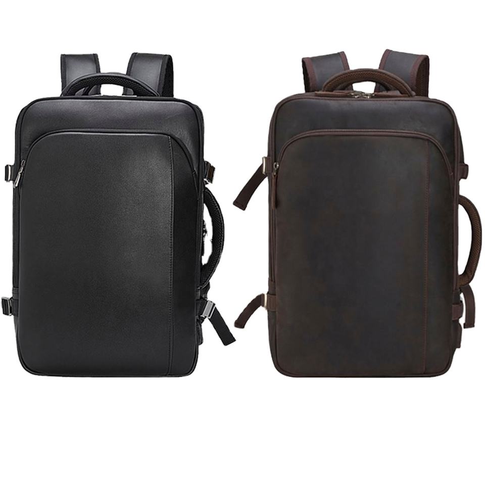 Sac à dos pour ordinateur portable en cuir véritable convertible en mallette de voyage USB grande capacité noir et marron de luxe avec logo personnalisé pour homme