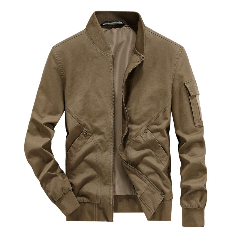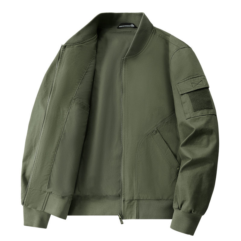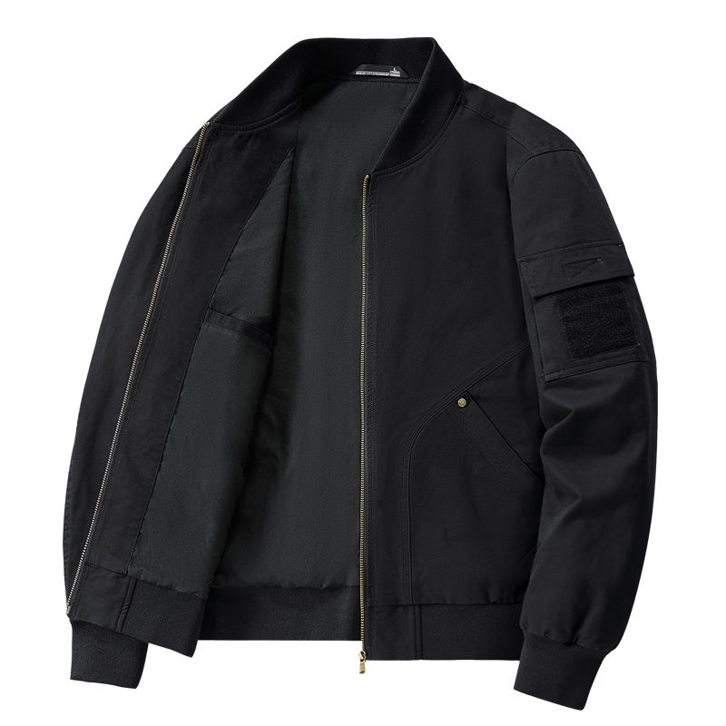 Blouson bomber personnalisé avec logo, pour homme, printemps et automne, en coton lavé, col baseball, coupe ample, décontracté, tendance et confortable.