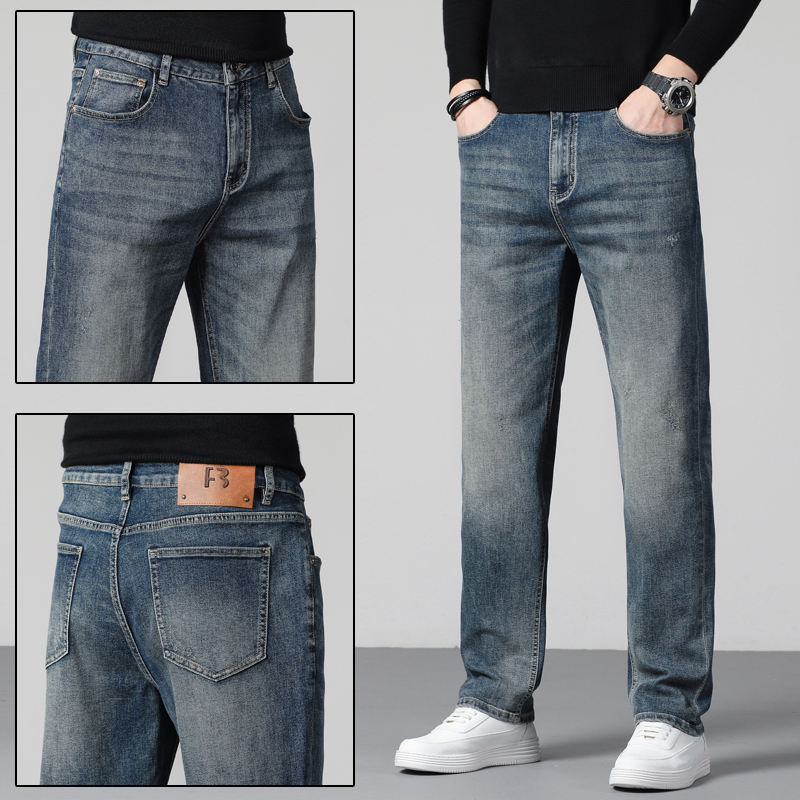 Logo personnalisé Nouveau haut de gamme nostalgique bleu ample et confortable jeans hommes jambe droite pantalons décontractés hommes été mince pantalon
