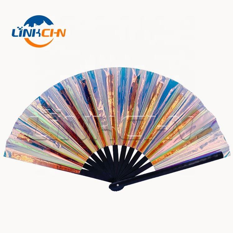Ventilateur à main pliable en PVC imprimé avec logo personnalisé avec cadre en bambou