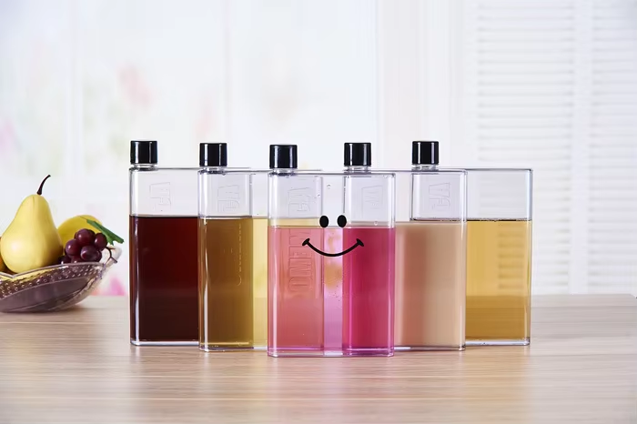 Logo personnalisé Cadeaux promotionnels Contenants à boisson Premium Designs Bouteille en plastique plate portable de 25oz 750ml avec couvercle