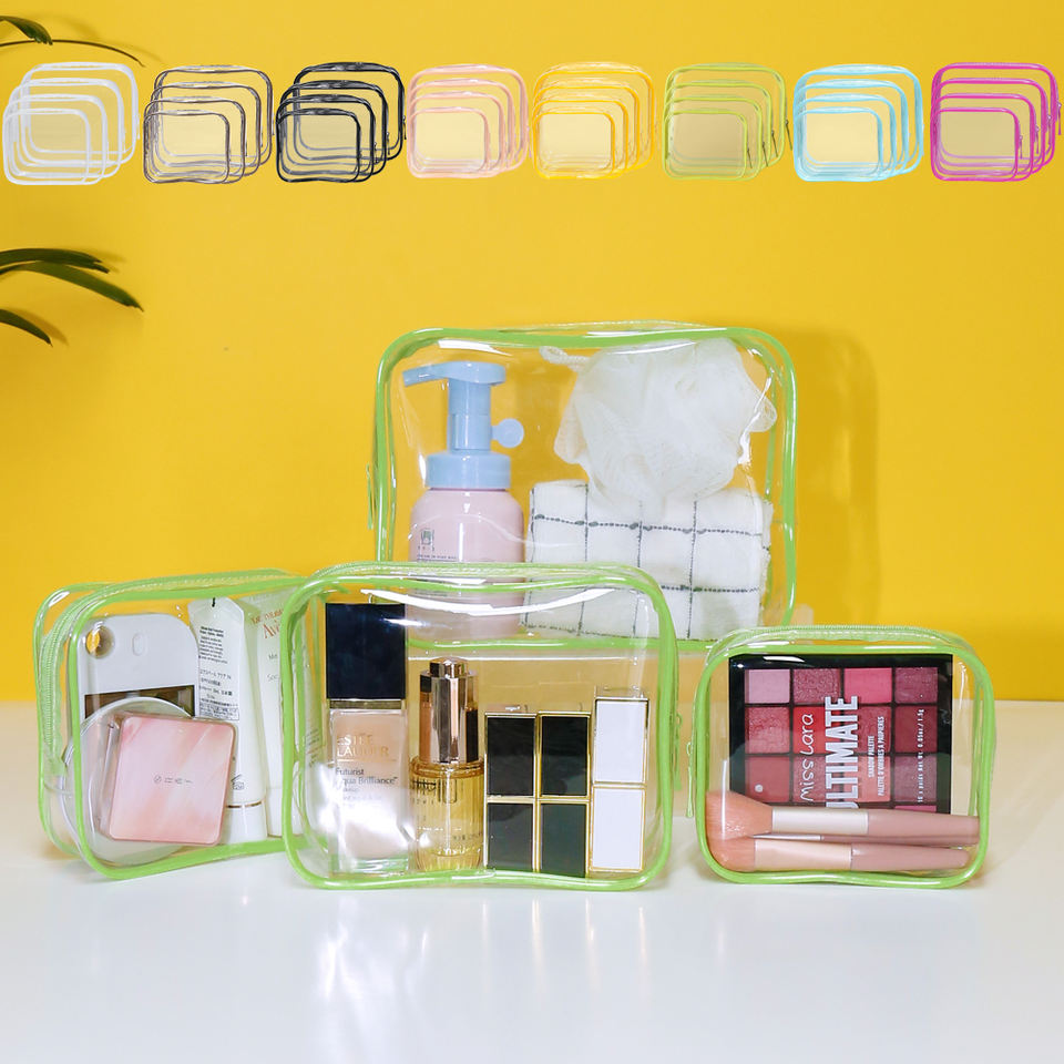 Logo personnalisé pvc sac de lavage transparent portable clair 9 couleurs sac cosmétique voyage trousse de toilette trousse de maquillage avec fermeture éclair