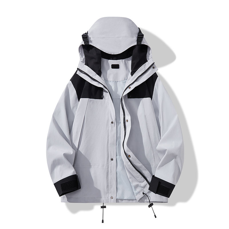Logo personnalisé Printemps et automne explosions couples couleur assortie manteau à capuche sport alpinisme outillage extérieur grande poche