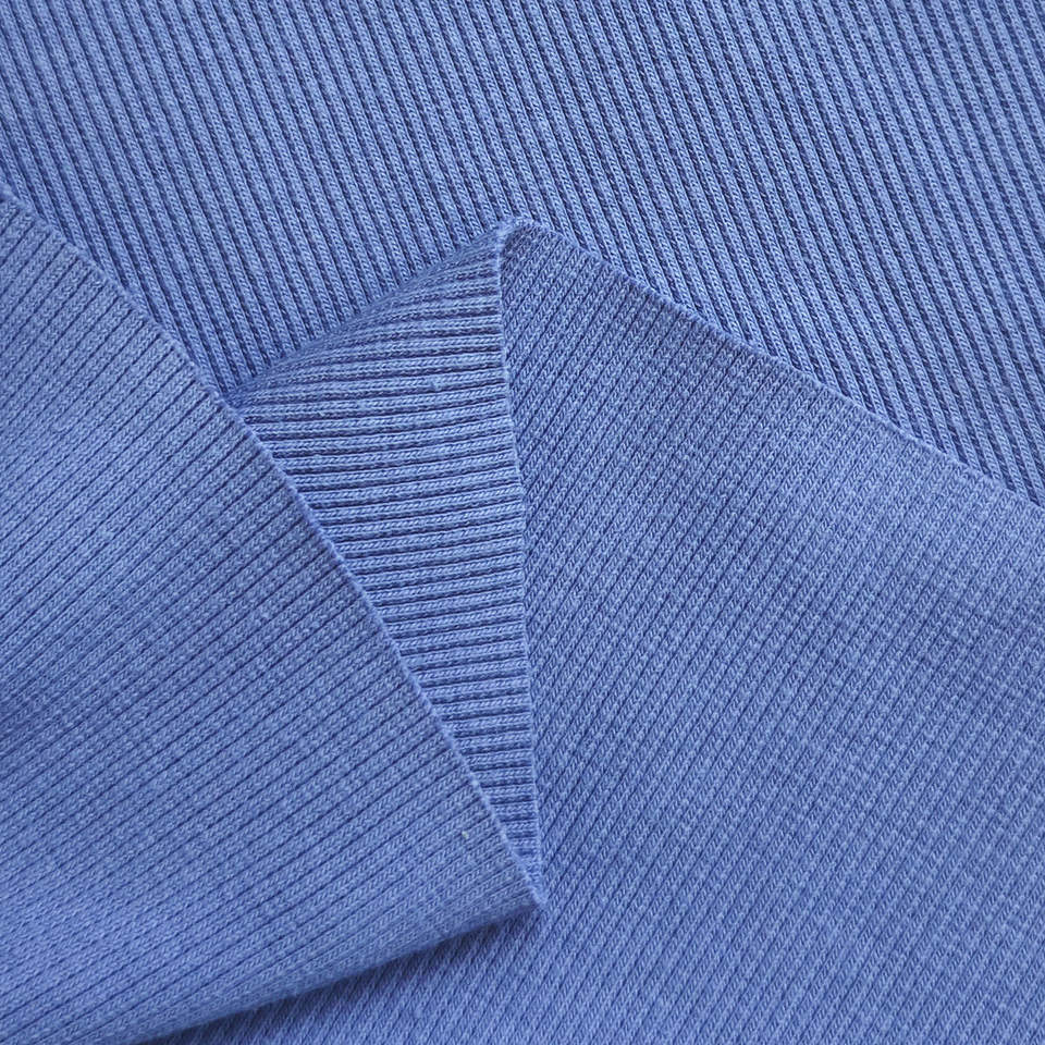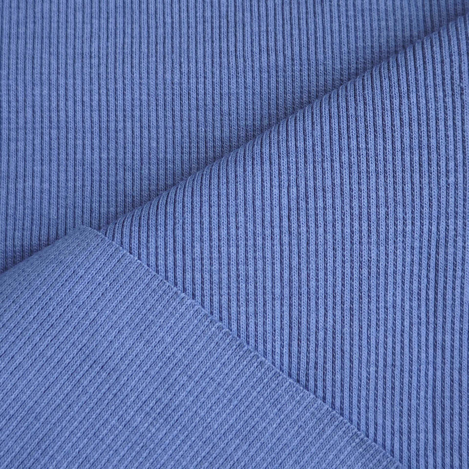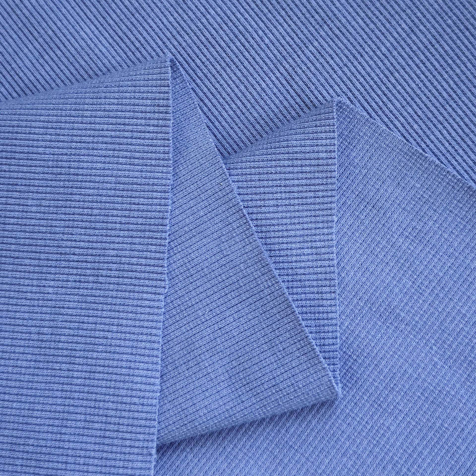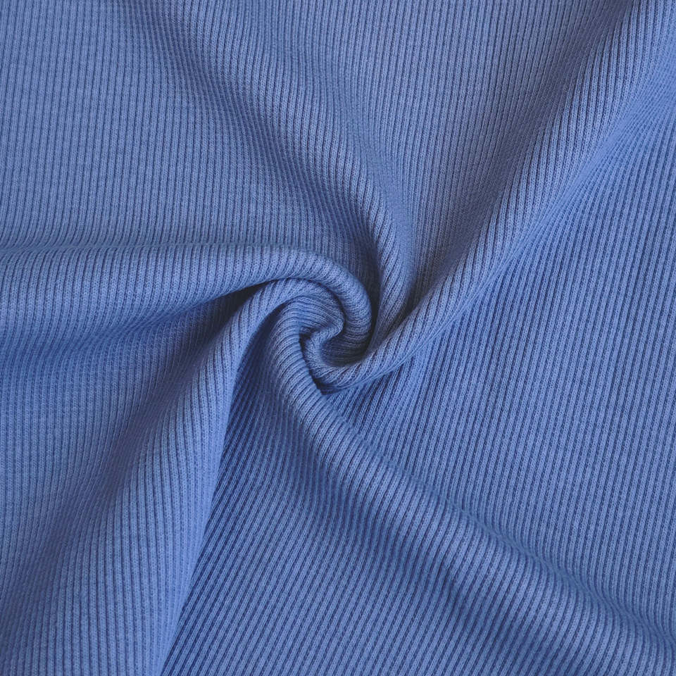 Tissu en coton extensible avec logo personnalisé, résistant à l'usure, sensation rigide, coton spandex, bord côte 2x2, col en tissu