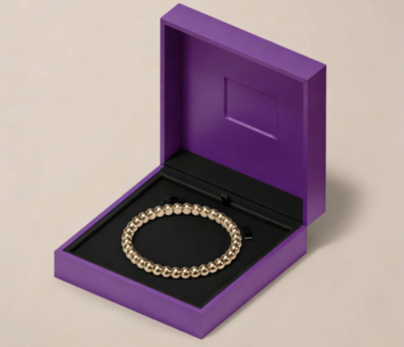 Logo personnalisé pour boîte à bagues et boîte d'emballage de bijoux en cuir PU violet haut de gamme