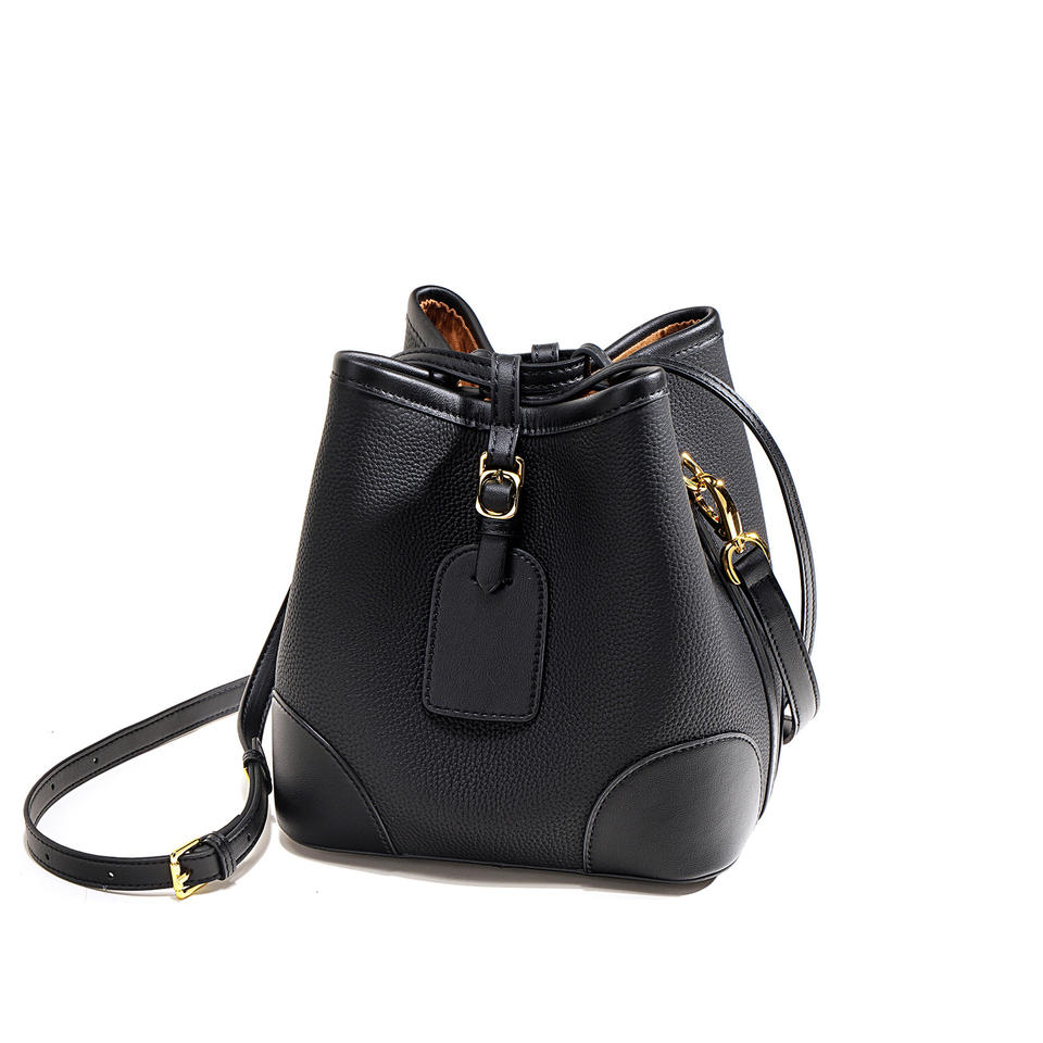 Sac seau tendance en cuir de vachette pleine fleur avec logo personnalisé, fermeture à cordon, portable, en polyester, pour femme, à porter à l'épaule ou en bandoulière