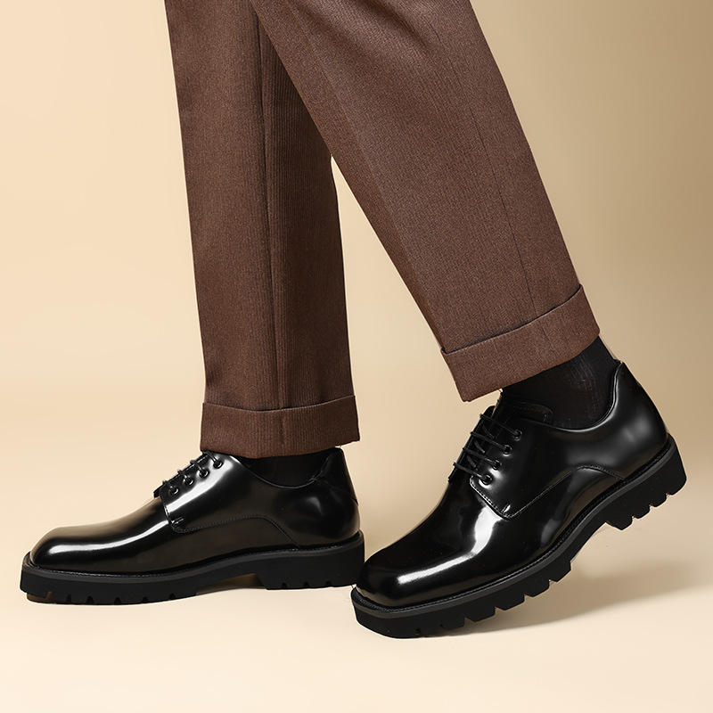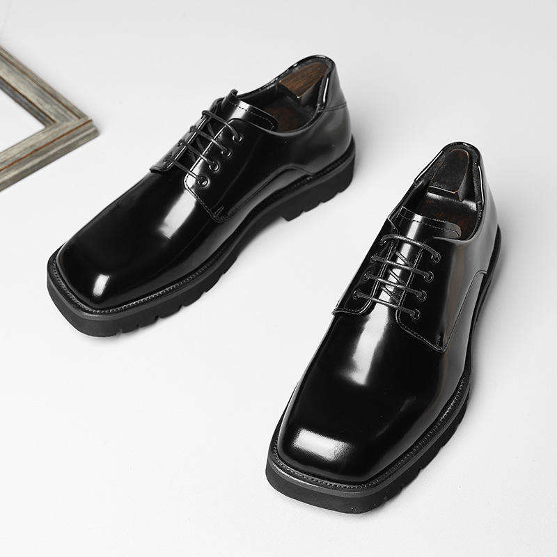 Chaussures décontractées pour hommes personnalisées, à lacets, taille 44, bout carré, en cuir noir, semelle épaisse, chaussures habillées et richelieu pour hommes