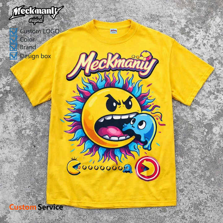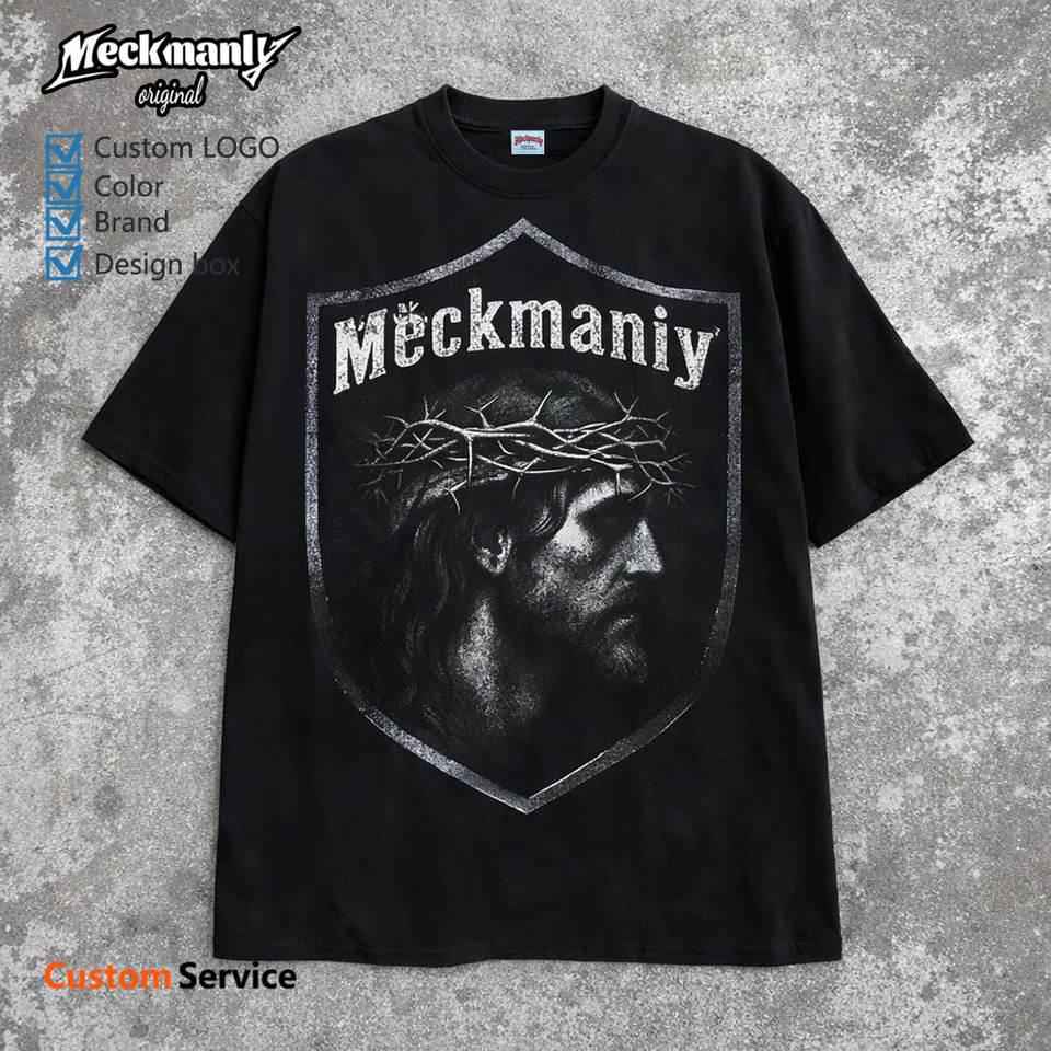 T-shirt court à épaules tombantes en coton épais, imprimé sur mesure avec motifs de haute qualité et lourds, T-shirt oversize pour homme