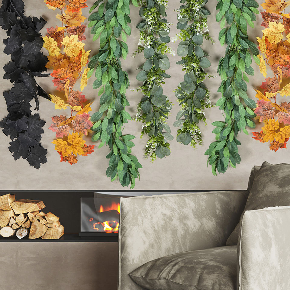 Simulation personnalisée de plantes vertes simulation de rotin décoration florale feuilles d'eucalyptus fruits blancs fil de fer rotin
