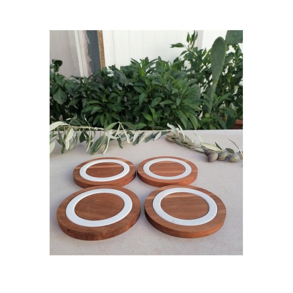 Taille personnalisée marbre et bois forme ronde tasse tapis marbre et bois sous-verres bois marbre caboteur top vente