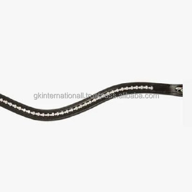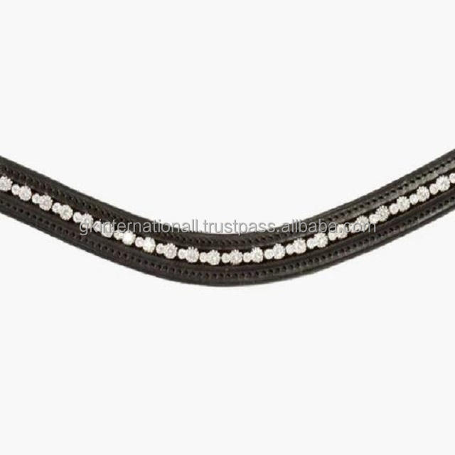 Bride personnalisée en forme de vague en cuir noir de première qualité avec chaîne argentée Diamante Crystal Bling en plein Cob sur les tailles