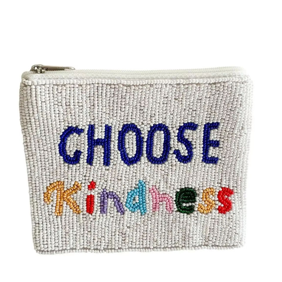 Porte-monnaie carré personnalisé, élégant, fait main, brodé de perles, avec inscription CHOOSE KINDNESS, design exclusif, haut de gamme, choix raffiné