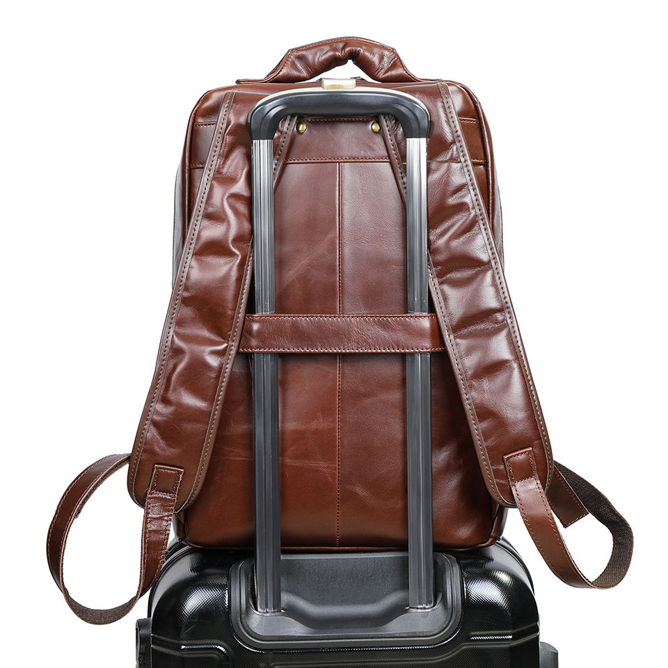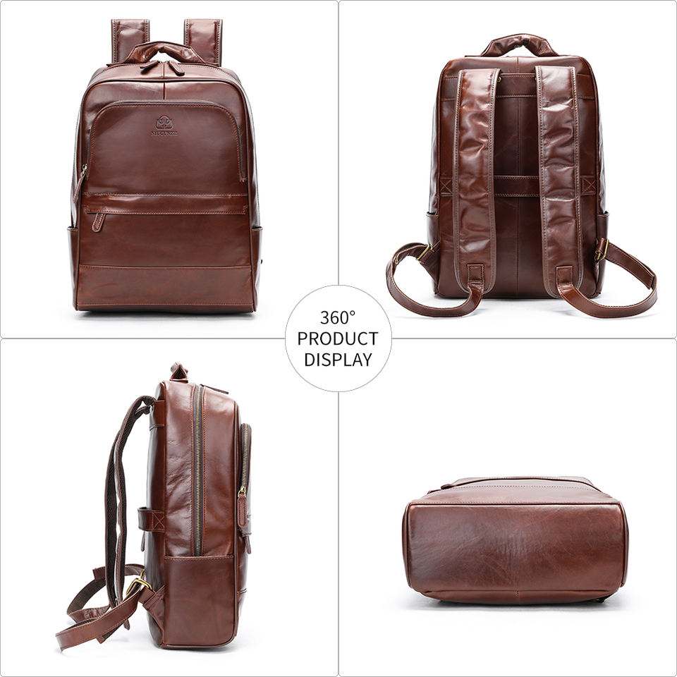 Customniucunzh Vintage Genuine Leather Business Laptop Backpack Large Capacity Waterproof Travel Backpack Mens Leather Backpackb