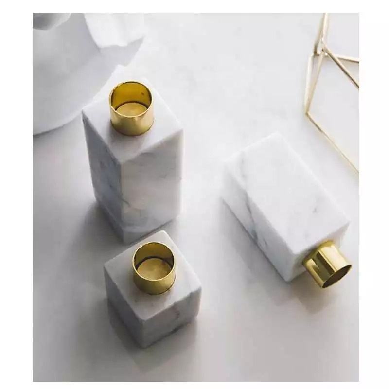 Bougeoir en marbre en forme de pilier supérieur en métal de taille personnalisée, design luxueux, décoration de comptoir, bougeoir