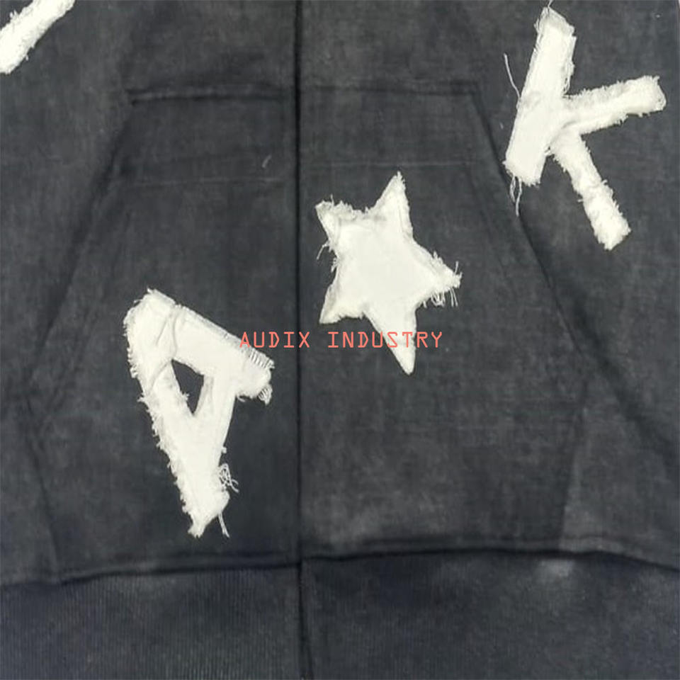 Sweat à capuche zippé avec patch de broderie lavé en détresse personnalisé sweats à capuche en détresse avec broderie d'appliques personnalisées