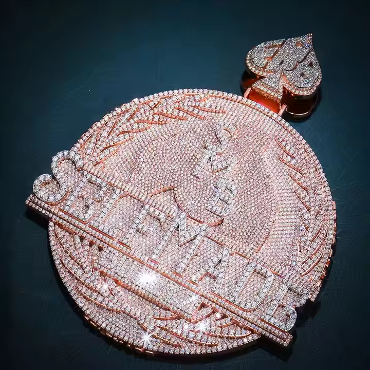 Cut Lab Grown Diamond 3.5 Inch Pendentif Argent 925 Plaqué Or Unique Ice Diamond Tester Design Statement Piece pour tout le monde