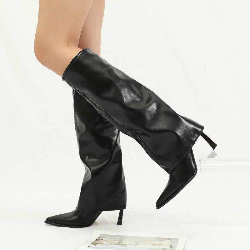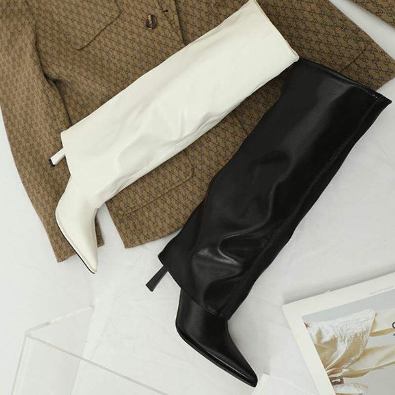 Bottines à talon aiguille de 7 cm, style rétro, coupe ajustée, longueur genou, pour femmes, 2024