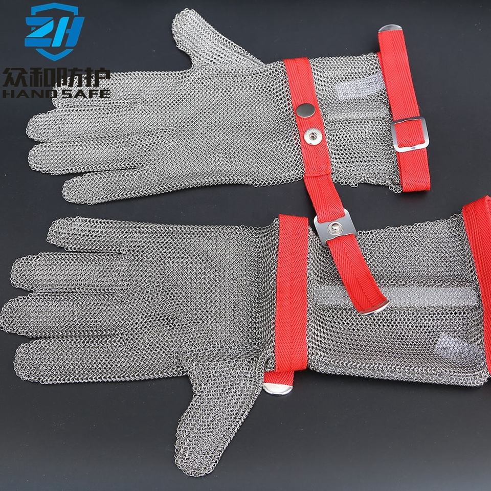 Chaîne en métal à cinq doigts, gants résistants aux coupures, avec longue manchette, pour le boucherie